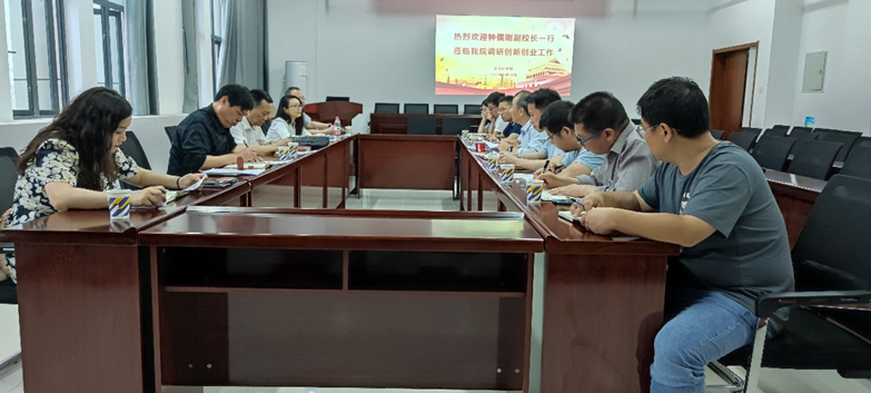 钟儒刚副校长听取了学院创新创业工作开展情况,与创新创业项目教师亲切交流,他表示学院要发挥专业优势和产业特色,孵化一批具有代表性的创新创业项目。钟儒刚在总结讲话时,提出了五点工作要求:一是创新创业教育理念要更新,知识教育是第一阶段,也是教育的首要任务,要在知识教育的基础上开展德智体美劳五育并举的素质教育,现阶段提倡创新教育,更加关注学生的成长。二是创新创业教育模式改革探索。要从科研反哺教学、项目驱动、师生同创等方面探索新的创新创业教育模式。三是创新创业管理体制和机制再完善,要构建全方位、系统化的双创教育管理体系,提升创新创业工作组织力、引领力、服务力。四是创新创业教育评价机制再探索,要探索提高创新积极性,激发创业活力的评价机制。五是要发展优秀的创新创业师资队伍,拓展视野、吸纳优秀的资源和力量,为学校高质量发展做出贡献。[审稿人:王可畏]