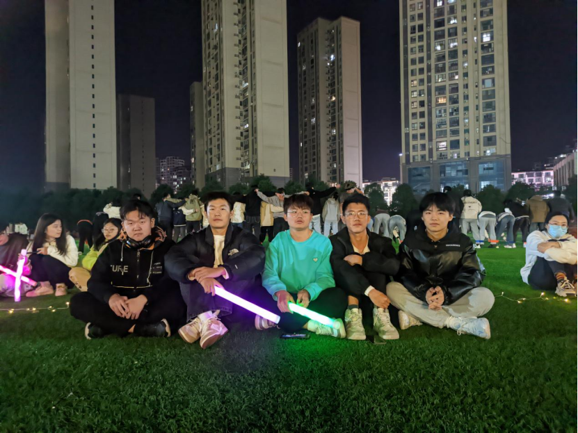 活动的第二项为环环相扣。参赛选手们分成小组,用最短的时间将荧光圈传至终点。这场游戏激发了所有人的团队合作意识和奋力拼搏的精神,大家都尽情挥洒热情,全身心投入到比赛中,将活动气氛推向了高潮。