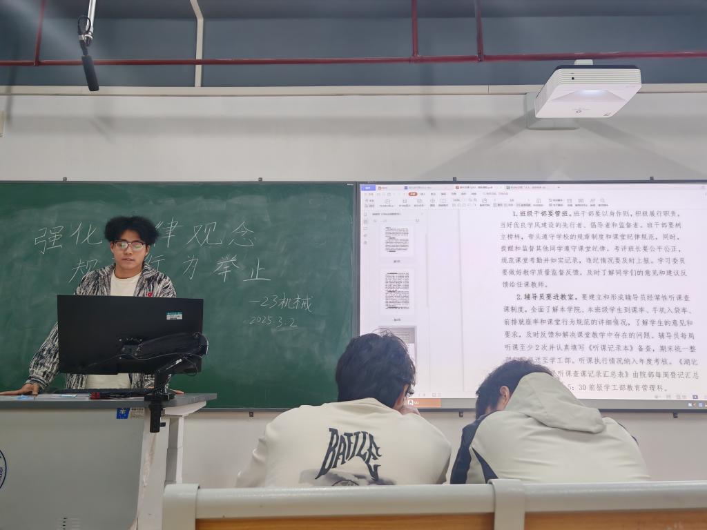 为进一步强化班级纪律建设,切实提升学生的纪律意识,规范日常行为举止,太阳集团tyc33455各班级于3月2日在揽胜楼召开了“强化纪律观念 规范行为举止”主题班会。此次班会旨在通过深入探讨与交流,引导同学们自觉遵守纪律,共同营造积极向上的班级氛围。
