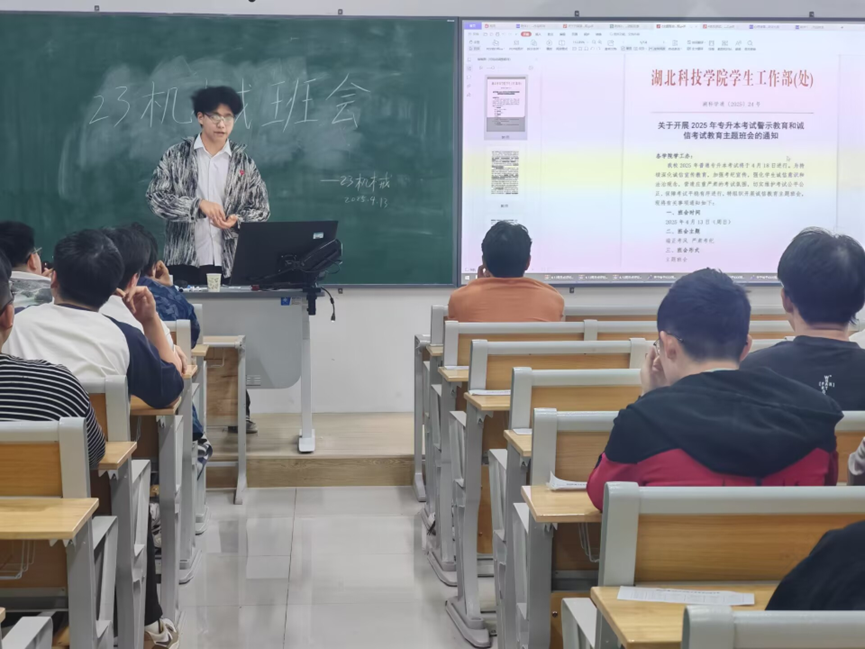 由于2025年普通专升本考试在即,为严肃考风考纪、营造公平公正的考试环境,4月13日,太阳集团tyc33455各班级在揽胜楼教室开展了“端正考风 严肃考纪”主题班会。班会由班主任和班长共同组织。