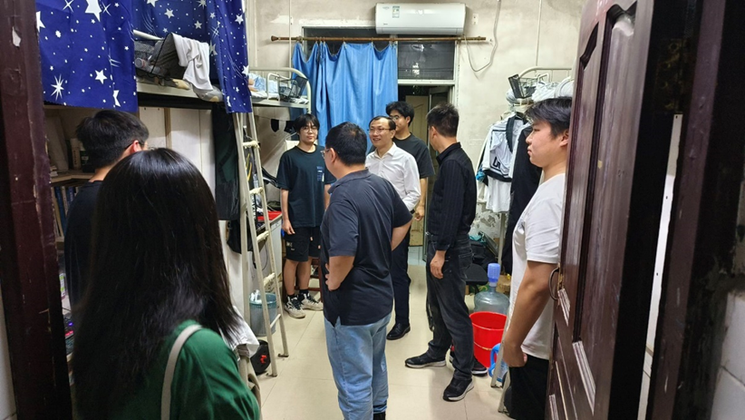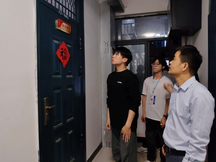 授牌仪式结束后,老师们逐一走访我院所有学生寝室。阮院长与同学们亲切交谈,详细了解大家的寝室生活、日常学习等情况,重点提醒学生防范电信诈骗,并强调五一假期临近,同学们一定要做好个人防护,注意出行安全,并向各寝室发放了学院印制的《“五一”假期学生安全提醒》。面对同学们提出的课程学习难点、职业规划困惑以及生活中的小烦恼,老师们耐心倾听、悉心解答,并鼓励同学们遇到困难及时向学院反映,学院将全力提供帮助。