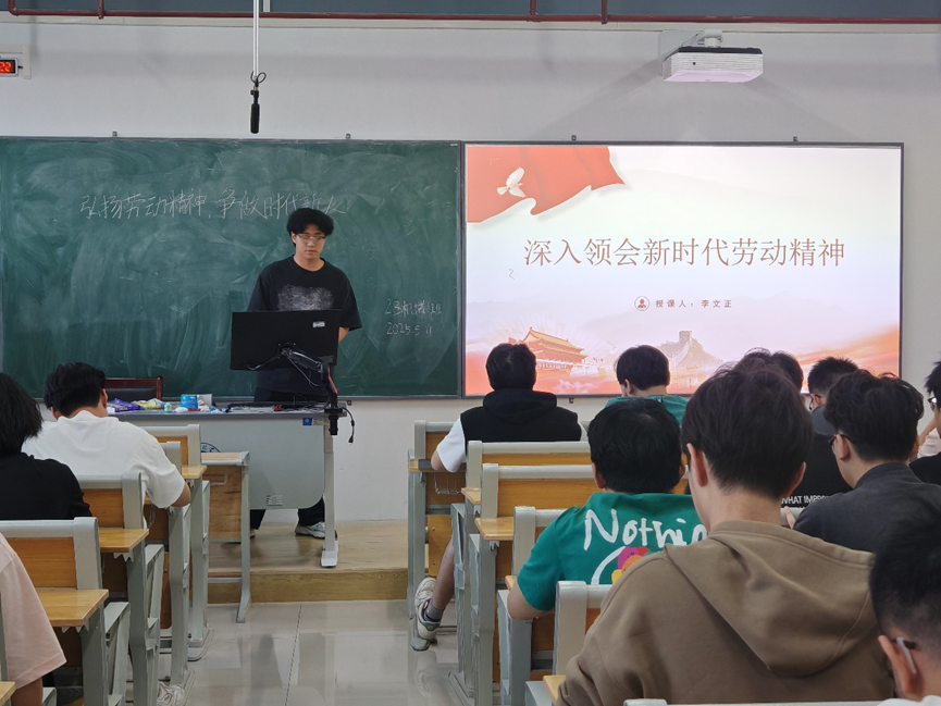 班会伊始,各班班长以生动案例深入阐述劳动精神的内涵,强调劳动不仅是创造物质财富的手段,更是个人成长与社会进步的基石。随后,班长们深入解读了习近平总书记关于劳动精神的重要讲话,引导同学们思考劳动在新时代的价值与意义,鼓励大家摒弃 “躺平” 心态,以先辈为榜样,在奋斗中 “觉醒”,在实践中奋进。