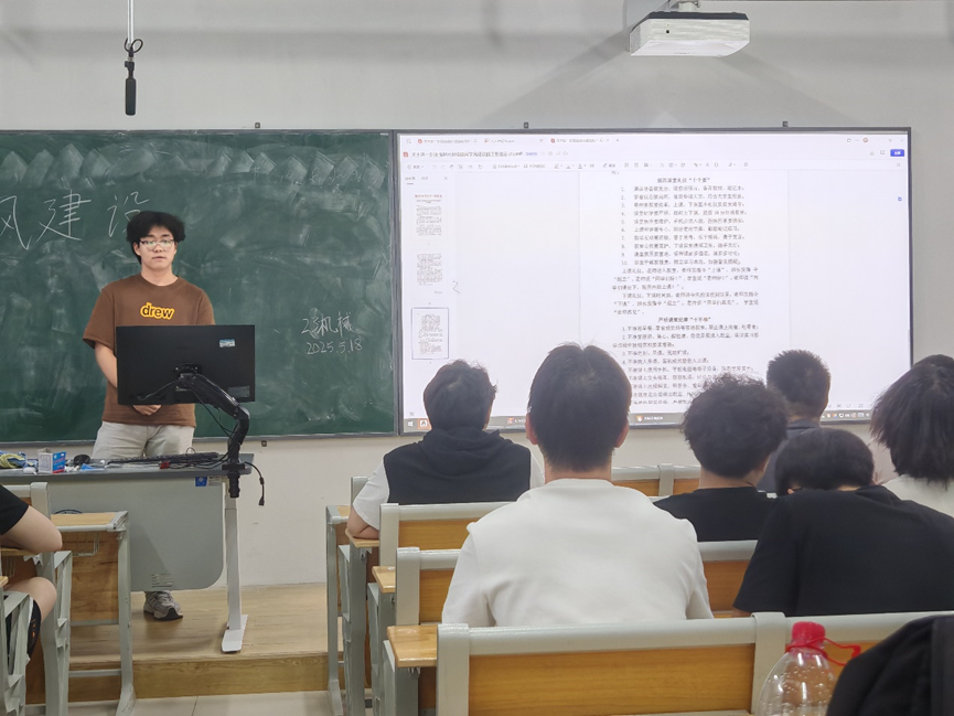 为强化学生自律意识、营造优良学习生活环境,太阳集团tyc33455于5月18日组织开展了学风建设主题班会,班会聚焦课堂纪律、行为规范、寝室管理等核心内容进行全面部署,推动学风建设走深走实。