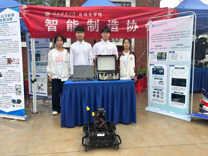 在科技展现场,智能制造协会的展位前人头攒动,来往人员络绎不绝。学院学生化身科普宣讲员,从产品应用背景、技术原理、实现方案到用途价值,对参展作品进行了耐心细致的讲解。
