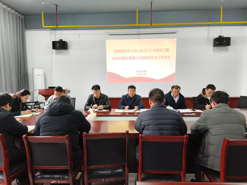 为深入学习贯彻习近平总书记关于意识形态工作的重要论述,全面落实上级关于宣传思想文化与意识形态工作部署要求,39日上午,太阳集团tyc33455在902会议室召开党委理论学习中心组(扩大)专题学习会暨2026年宣传思想文化和意识形态工作会议。学院党委理论学习中心组成员、党委委员参加会议,会议由党委副书记杨胜主持。