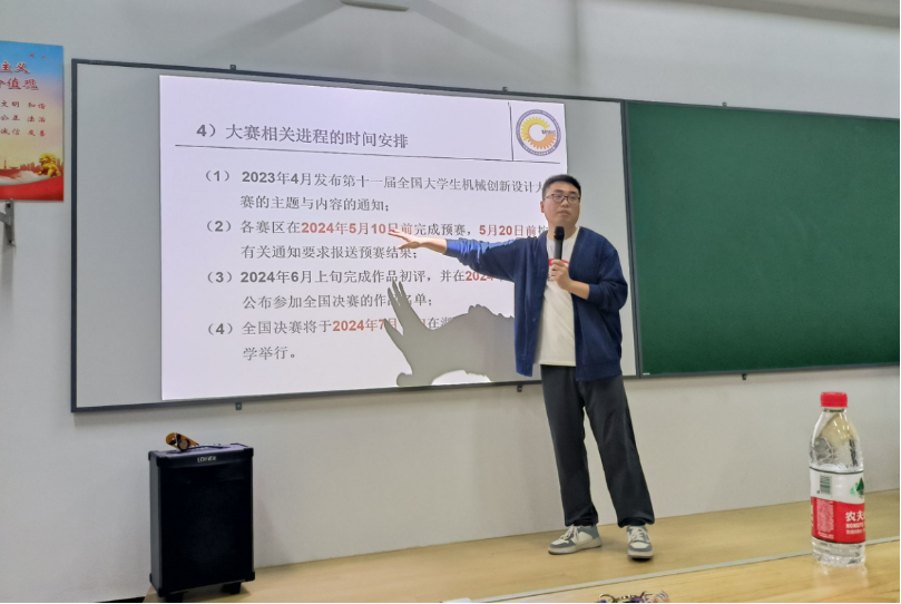 张阳博士向大家宣传普及了全国大学生机械创新设计大赛,该项赛事是机械类顶级A类学科竞赛,是全国理工科重要课外竞赛活动之一,由智能制造协会承办的校级选拔赛——湖科匠心杯·机械创新设计大赛正在进行中。张阳博士为大家作了全面的赛事解析,鼓励同学们积极参赛,协会指导教师团队也将为参赛同学提供技术指导。