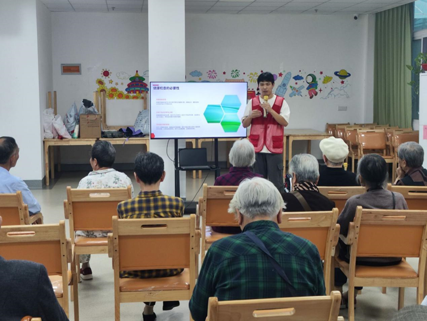 活动一开始,志愿者们细心搀扶老人们前往活动室就座。随后,青马班的同学们热情地与老人们交流,不仅为他们简要介绍了生活健康的小知识,还强调了健康生活对身体的重要性。