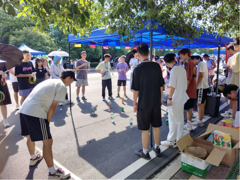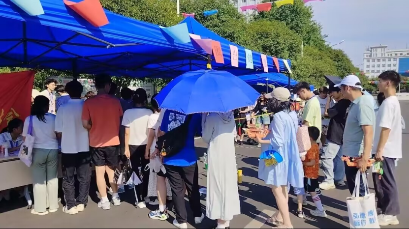 炎热的高温抵挡不住学生的参与热情,参加套圈圈游戏的同学络绎不绝,在帐篷前排起了一条长龙,成为了本次端午游园最受欢迎的活动之一,不少过往的同学和老师也被游戏氛围所吸引,积极参与到套圈游戏中。