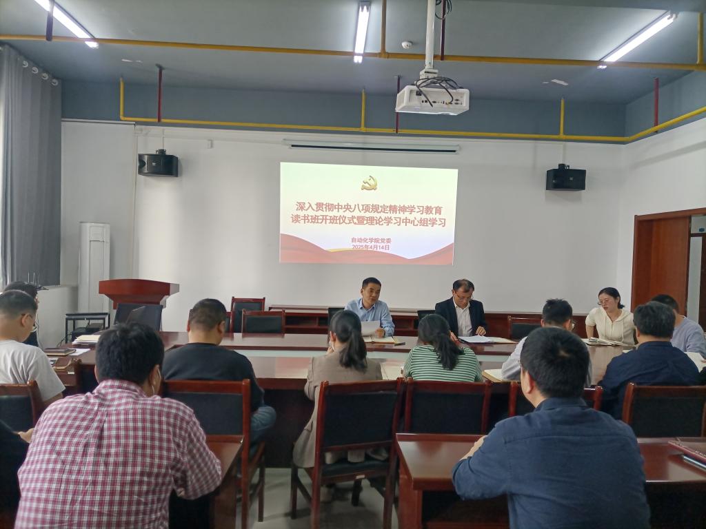 为进一步强化作风建设,切实将中央八项规定精神落到实处,4月14日,太阳集团tyc33455党委深入贯彻中央八项规定精神学习教育读书班开班仪式暨理论学习中心组学习活动在揽胜楼902成功举行。会议由党委书记阮若林主持,学院领导班子成员、各党支部书记、教研室主任及行政管理人员等参加了此次会议。