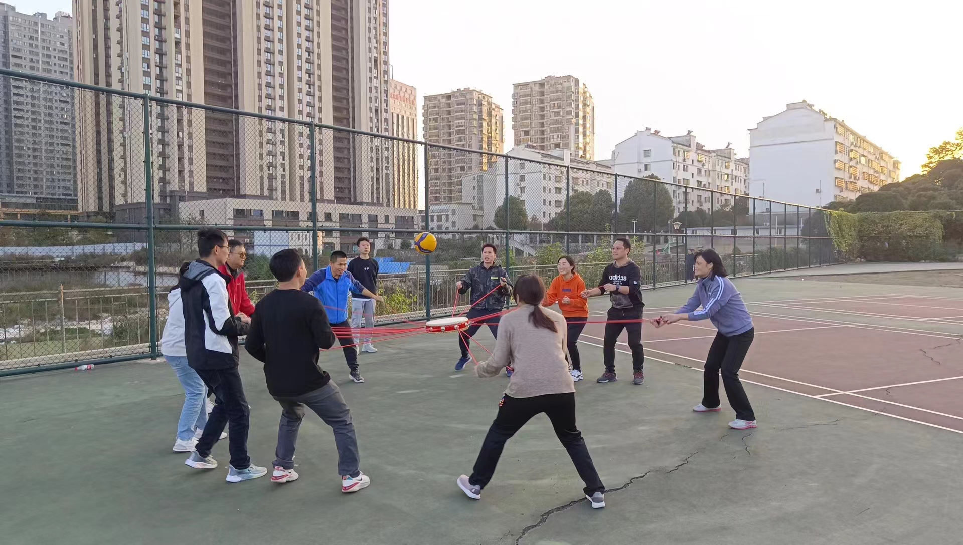 本次运动会共有6个项目:众星捧月、疯狂毛毛虫、集体足球踢准、同心击鼓、集体8字跳绳、排球投篮,活动集趣味、竞技、友谊、锻炼于一体,诠释了康乐运动会的主题。