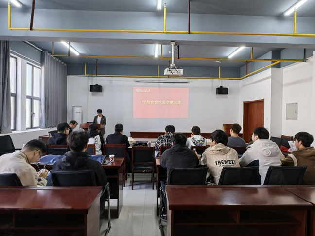 最后,新当选会长孟令豪发言。他深情回顾了在母校求学的时光,表达了对学院培养的感恩之情,承诺将恪尽职守,积极凝聚广大校友力量,搭建校友交流合作平台,为学院发展贡献校友智慧与力量。