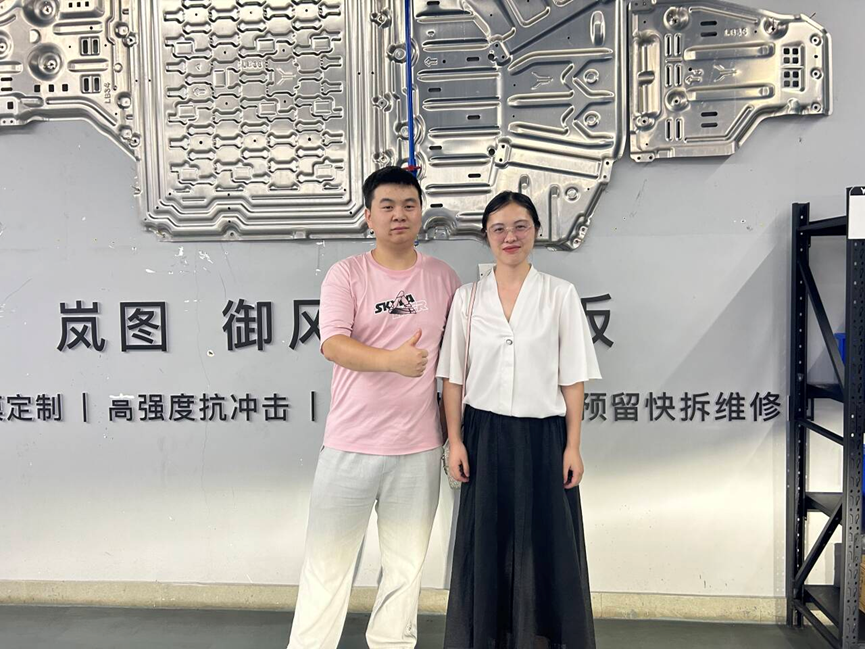 最后,李老师赴深圳东风岚图汽车交付中心看望25届毕业生代安奎。在代安奎引导下,老师了解了汽车交付全流程,关切询问其工作与生活状况。代安奎详细汇报入职进展,对老师的专程到访表示感谢,表态将牢记学院教诲,在岗位上勤学进取、为母校争光。