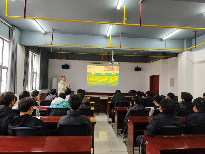 交流答疑环节。同学们积极举手提问,围绕岗位晋升路径、专业技能要求、实习安排等问题与宣讲人员深入交流,宣讲人耐心细致地逐一解答,现场互动频繁。